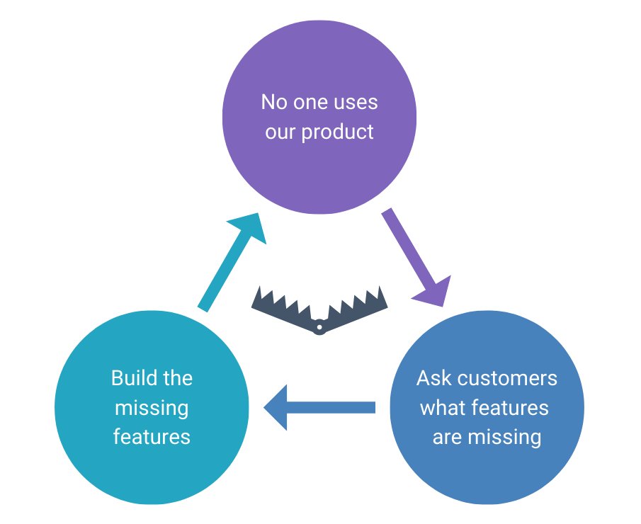 But no matter how much the team delivers, it gets only worse. Features shipped in a hurry do not solve anyone's problems and do not drive the expected business results.