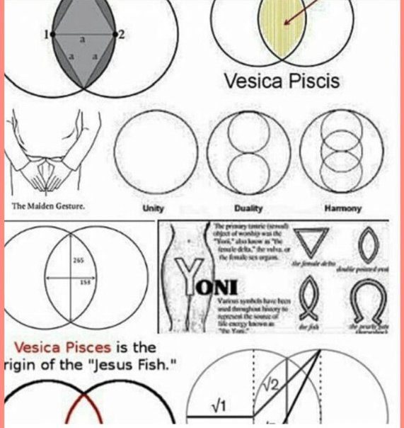 Vesica Piscis: The Eye of the Vortex (🧵) The Vesica Piscis is a Dual Lens of Mathematical Symmetry, the True ALL-SEEING Eye or FishEYE Lens, the 2 Fish ('JesusFish'= 69) are the Yin/ Yang, the WOMB or Yoni of ALL Creation. The Vesica Piscis is a Portal to Higher Consciousness.