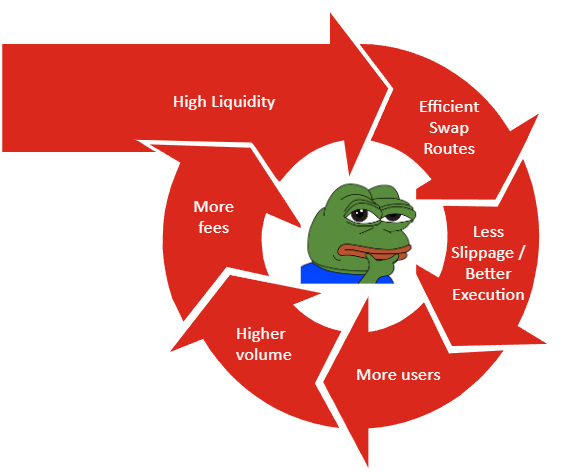 Protocols that earn more fees are able to incentivize higher APRs for liquidity providers (LPers), hence incentivizing more liquidity into the system.