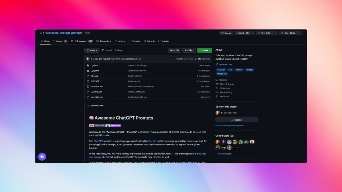 This repo includes ChatGPT prompt curation to use ChatGPT better.