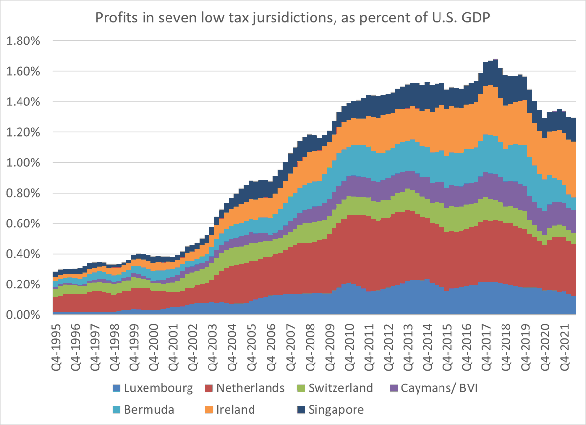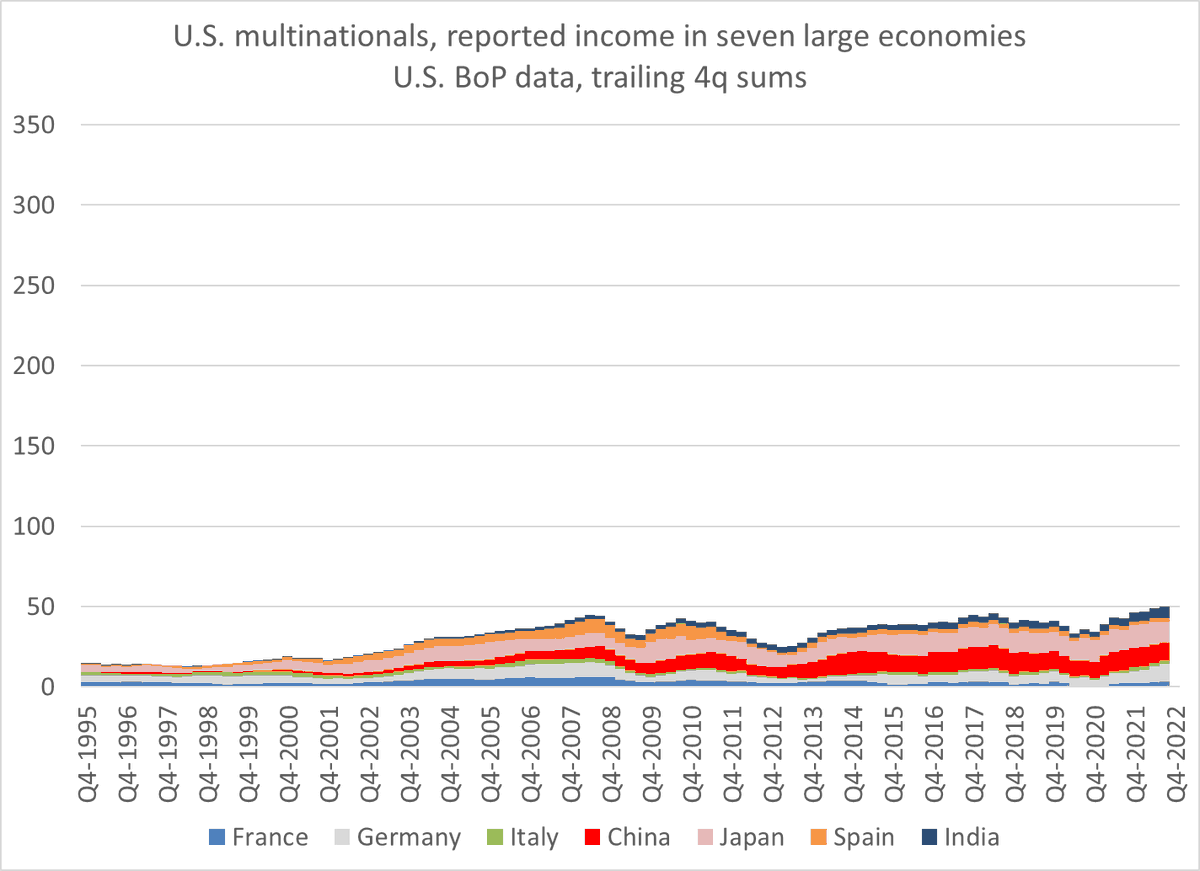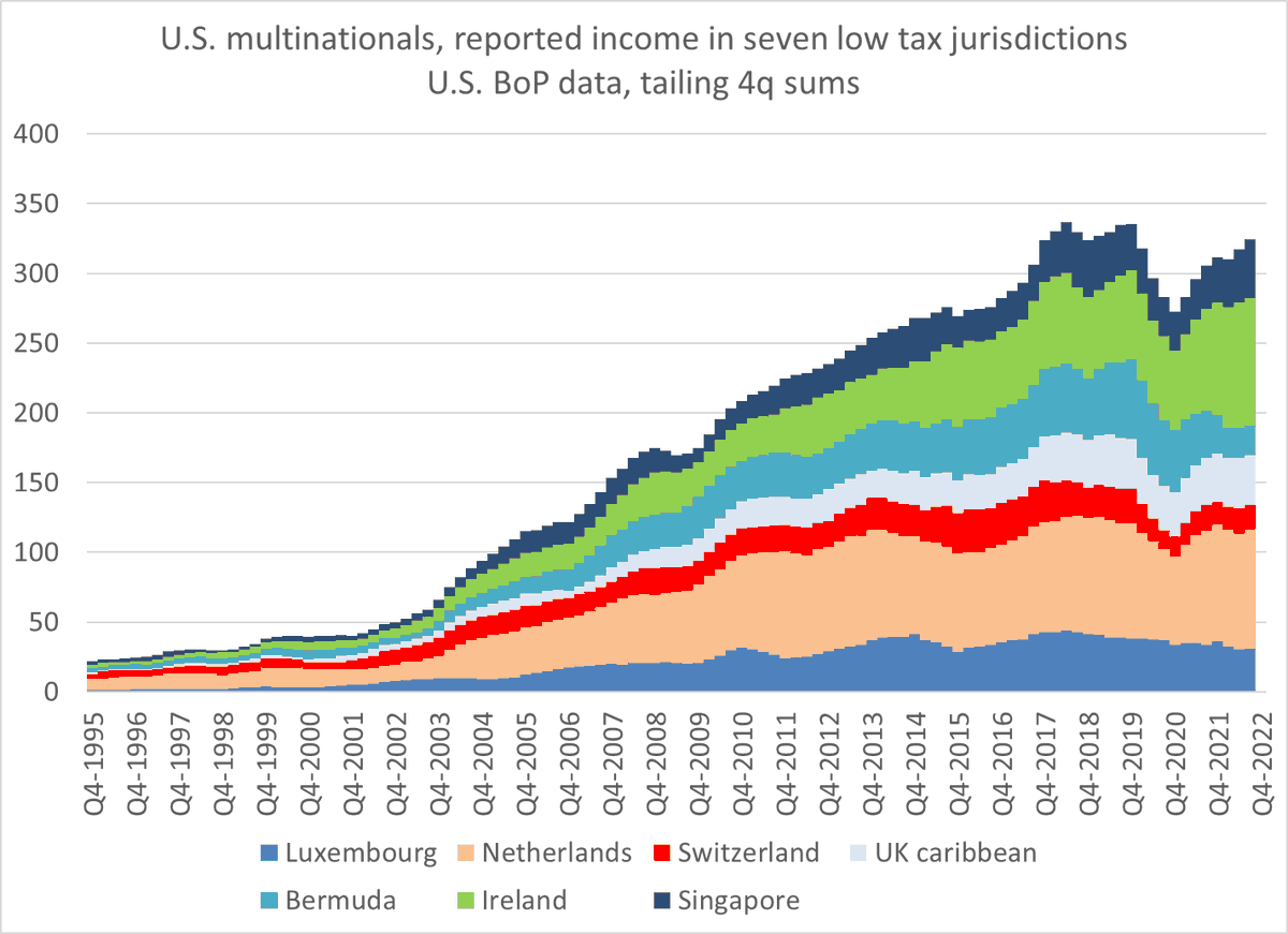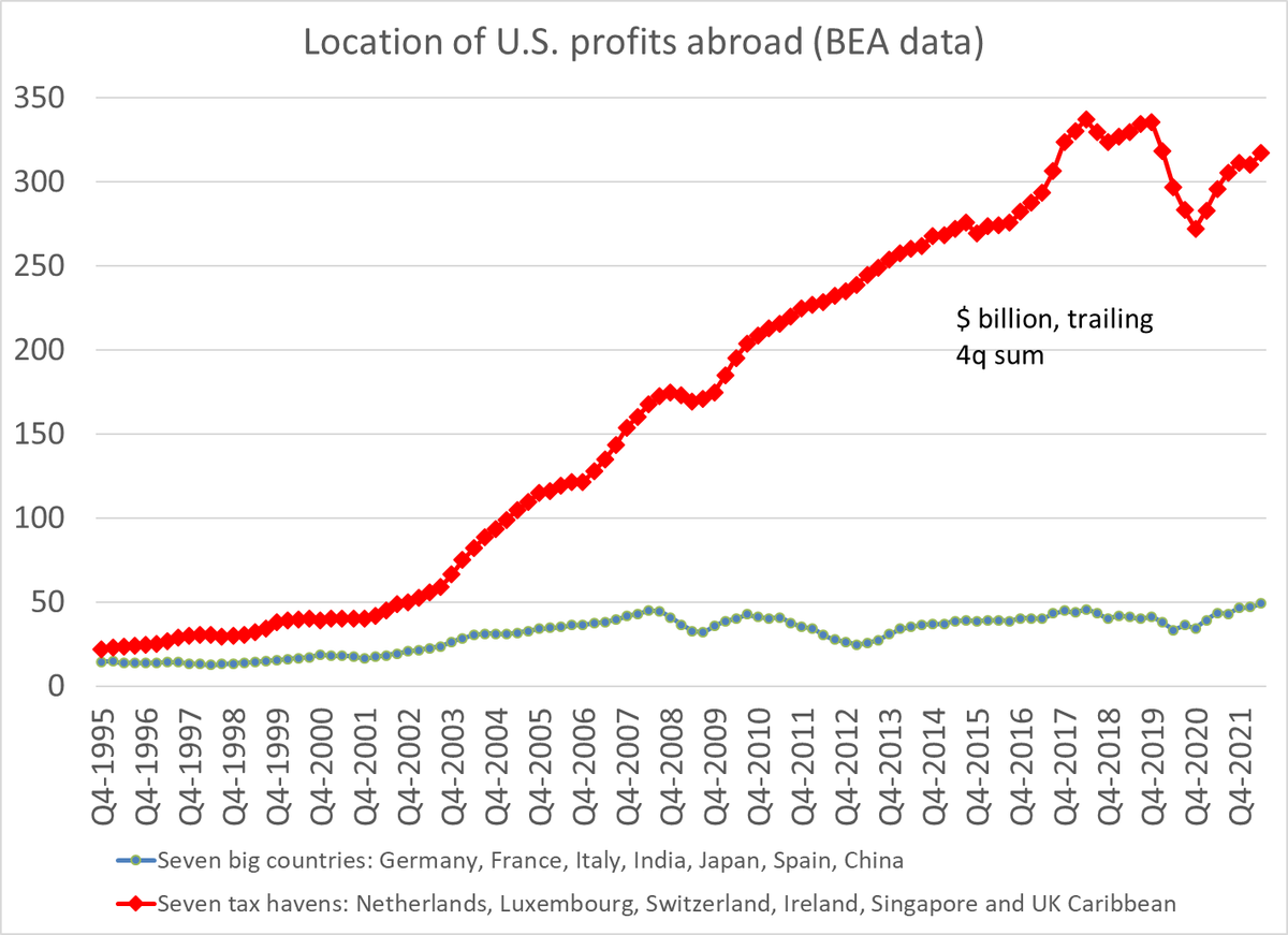 The 10-Ks for a lot of big firms (Apple, Microsoft, most of big Pharma, the chip design houses, the chip equipment manufacturers) suggest that they continue to book a large share of their profits offshore ...