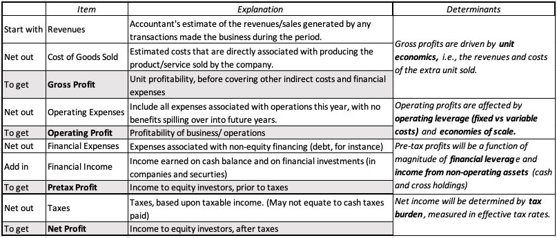 To set the table, I start by laying out the different measures of profit that we encounter in income statement, and the business economics that drive the magnitude with each. My apologies if you find it too basic and simplistic. bit.ly
