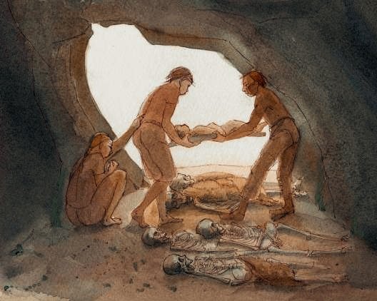 9/ Thus, the coming of the Mesolithic finds the inhabitants of Franchthi activing in a complex cultural environment, as evidenced by the cases of burials inside the cave, ➡️