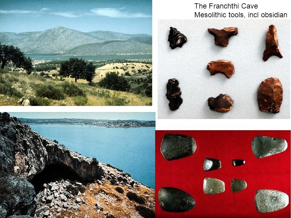 7/ A typical example is the Franchthi Cave in Argolis. At the end of the Pleistocene the site was inland and at a distance from the coastline, having easy access to water and having in front of it a plain rich in biodiversity, suitable for hunting and foraging.