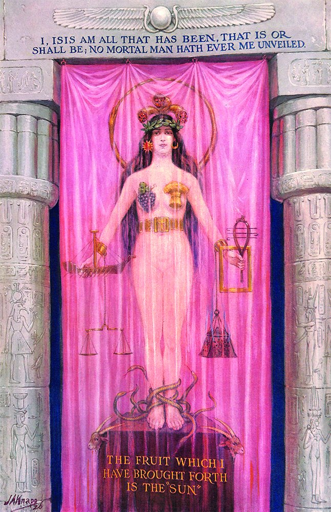 In Egyptian mythology, Isis is sometimes pictured weeping over the broken column which conceals the body of her husband Osiris, while behind her stands Horus or Time pouring ambrosia on her hair. Osiris & Isis commonly symbolized the Active & Passive Principles of the Universe.