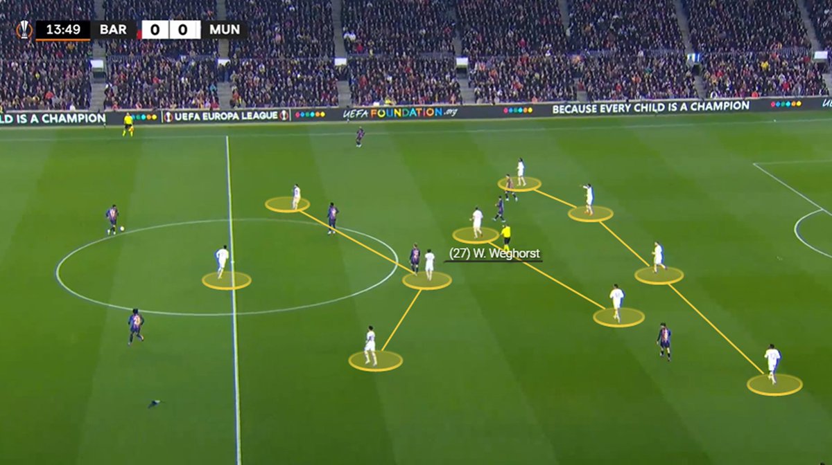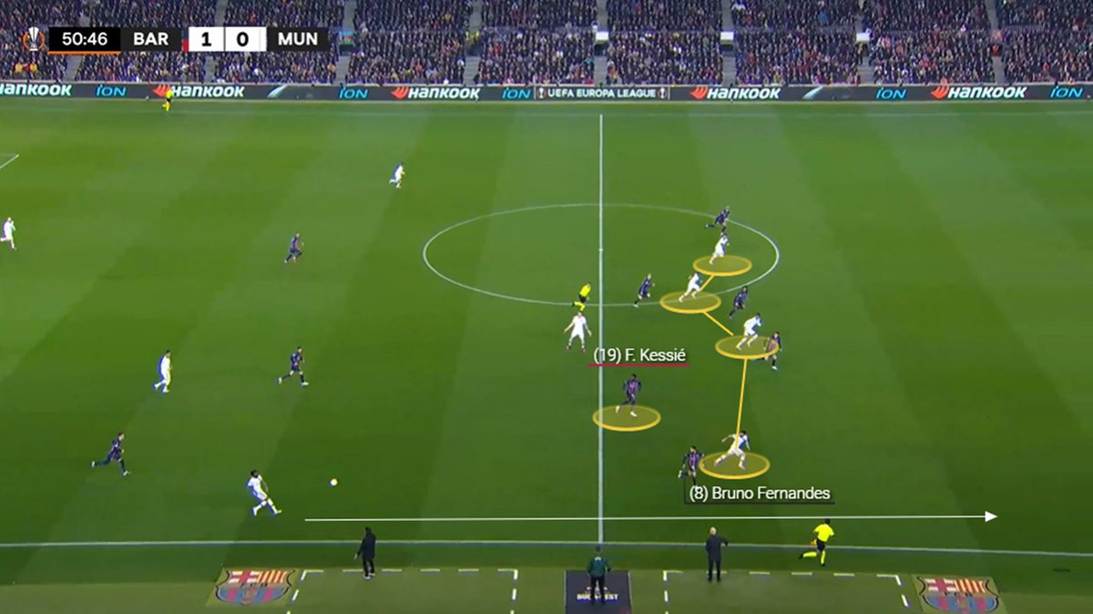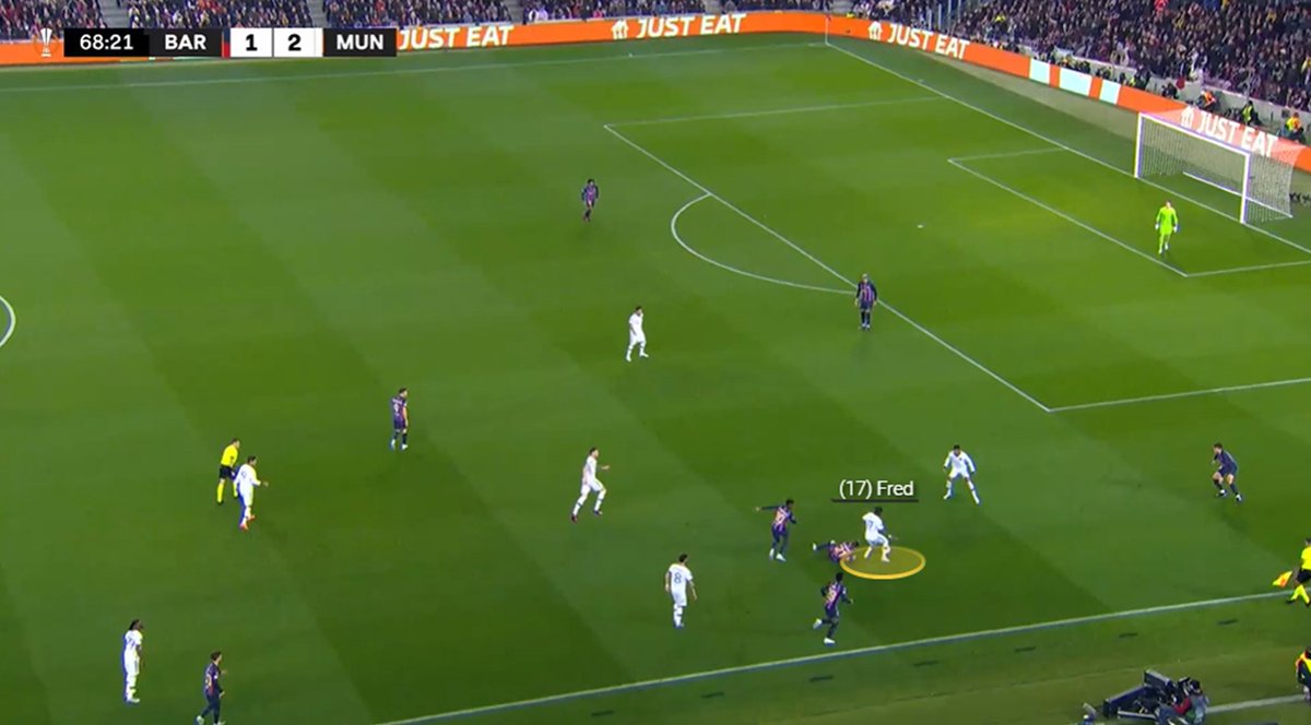 Fred can also ball carry and join in the attack as an advanced midfielder but harry Barcelona in possession ensuring they didn't have time on the ball. Rather than relying on him in the pivot where he isn't the most reliable at progressing the ball from defence to attack