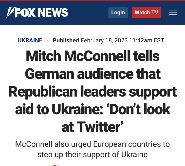 WTF? Mitch McConnell tells German audience that Republican leaders support aid to Ukraine: βDonβt look at Twitterβ. foxnews.com