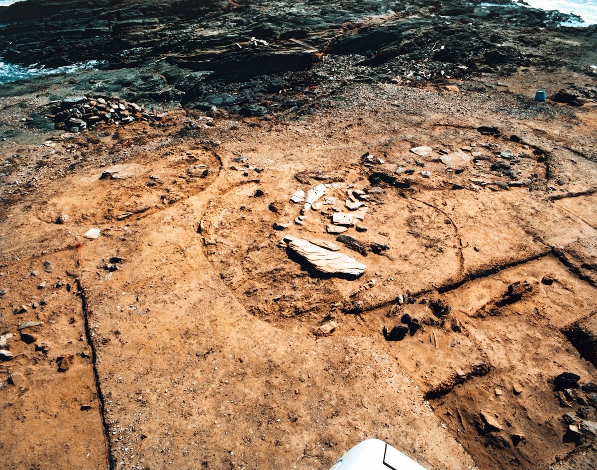 2/However,the major breakthrough in the Aegean Mesolithic took place with the discovery of an open-air settlement at the site of Maroulas on the island of Kythnos,during an excavation activity that run between 1996-2005. The surviving remains were found within a surface 1500 sqm