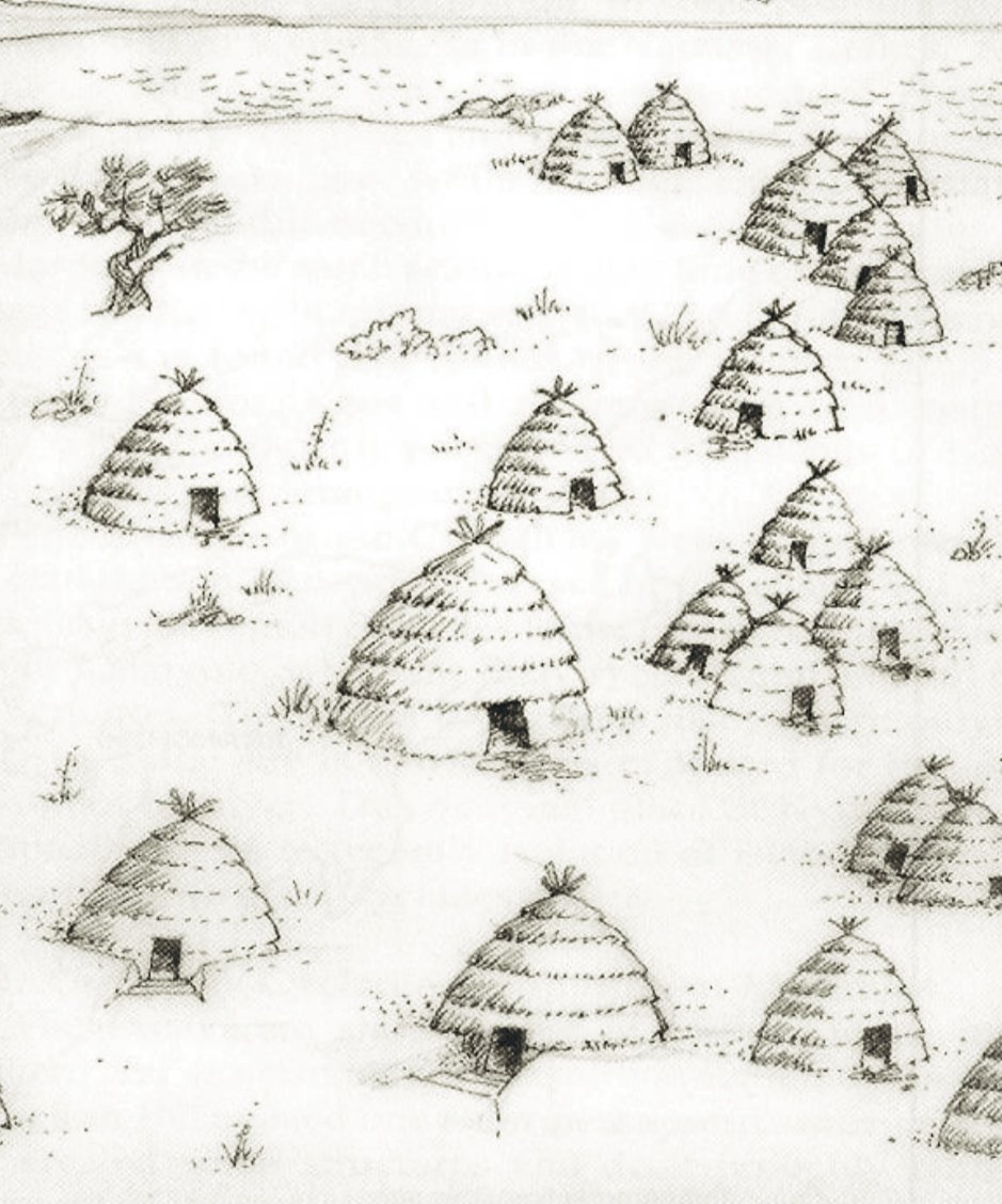 ➡️ Their circular form has been thought to have been a conical structure with a stone foundation and superstructure of perishable materials, i.e. piles covered by some insulating material on the outside.