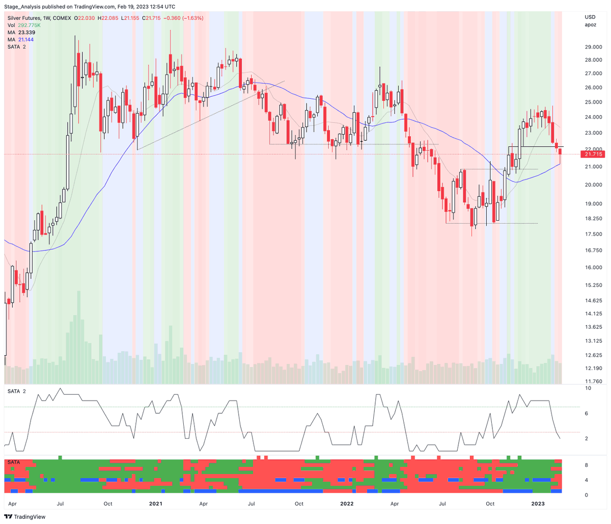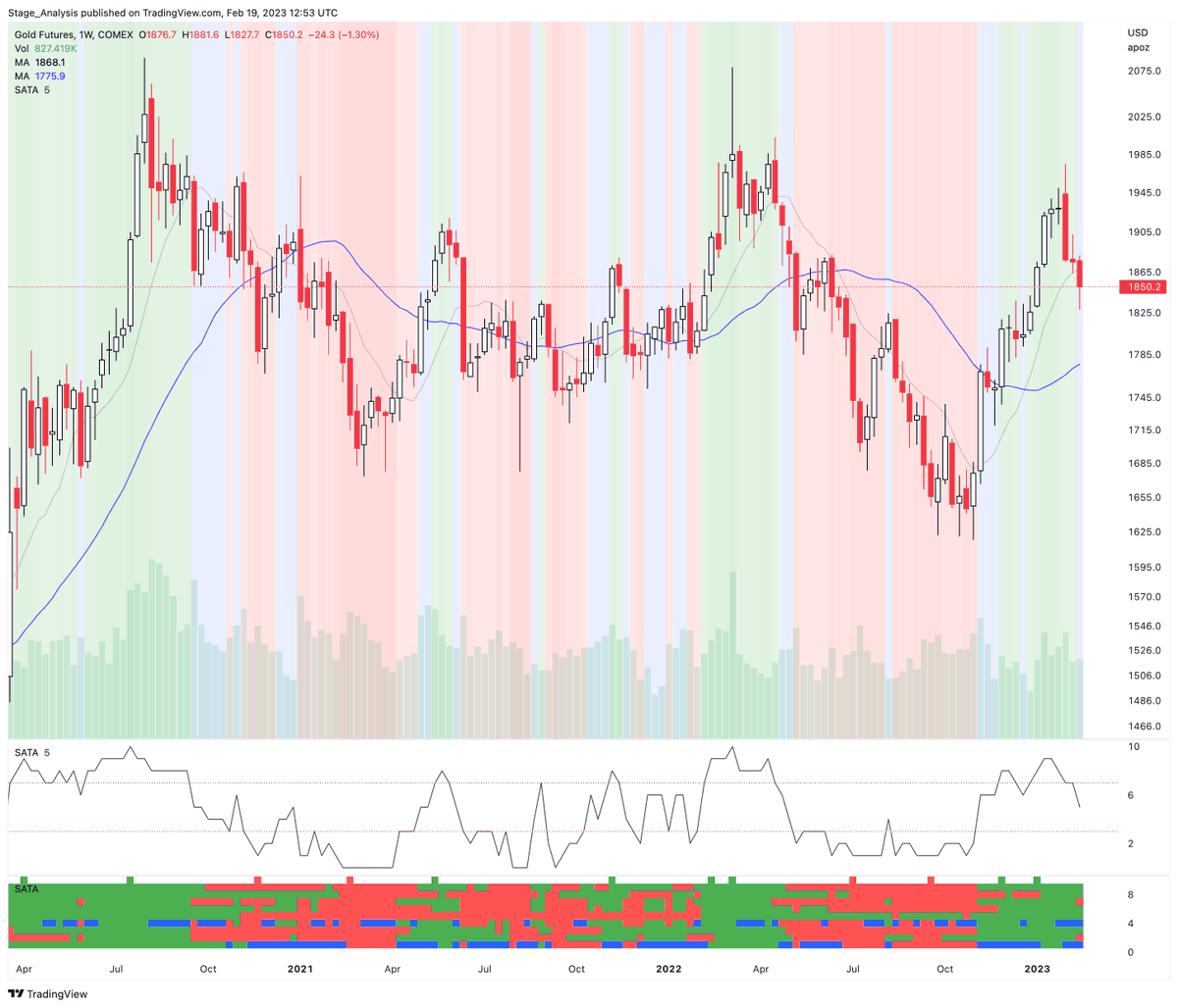 Dollar Index – Stage Analysis Technical Attributes (SATA) chart with multiple variations of the indicator.
