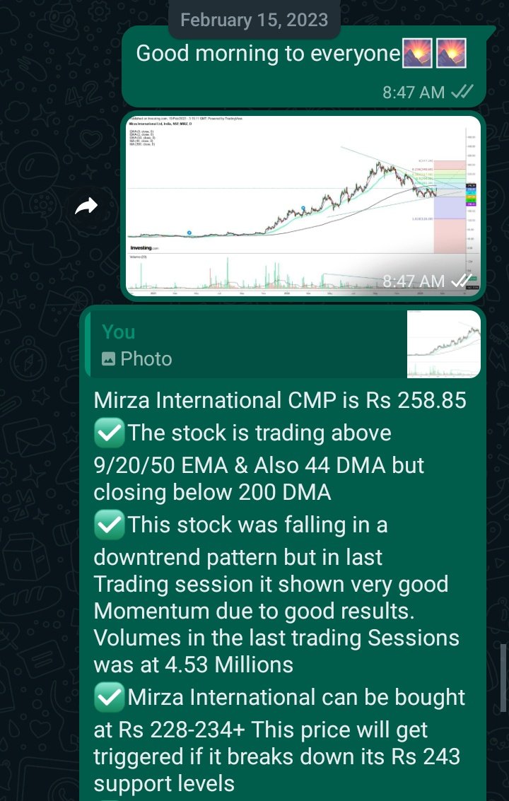 β Mirza International ππ was a 14th February 2023 Setup. It was trading at Rs 258-261