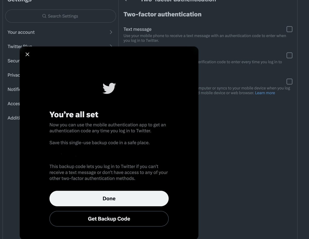 No Twitter Blue subscription is needed, and you got a way safer alternative to text-based 2FA.