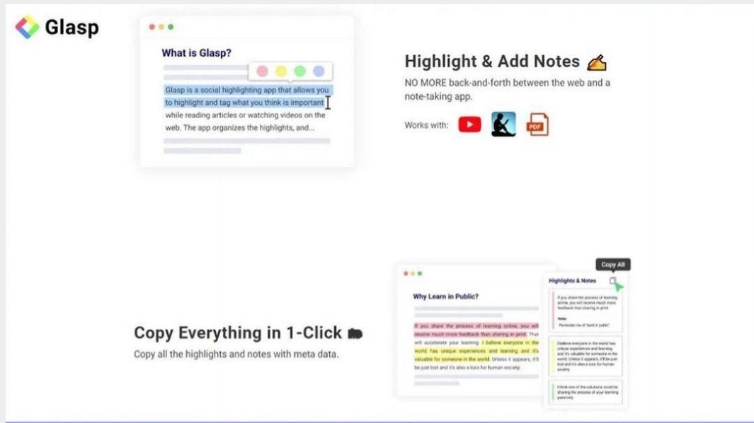 3. Glasp. Add highlights and take notes directly on any website. No more back-and-forth between the web and a note-taking app.
