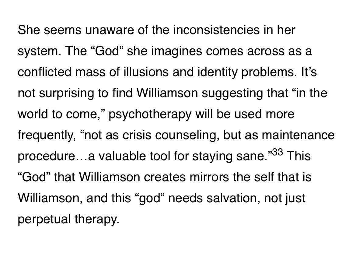 Marianne Williamson asserting that evil is a mere figment of your imagination.