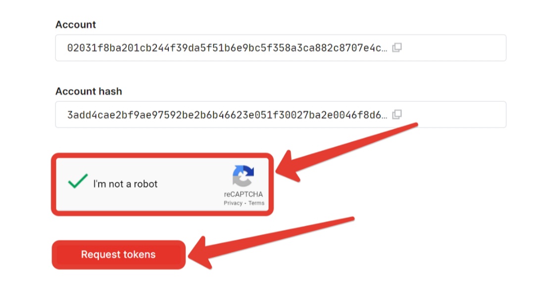 * Go through the captcha and click on «Request Tokens»