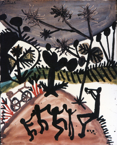 Pintada por Picasso em 1956, "A Dança" era uma obra característica do período tardio do mestre andaluz, marcado pelo estilo indefinido, releituras e referências a elementos de suas fases anteriores, com ênfase no colorido e na composição de matiz expressionista. 10/23