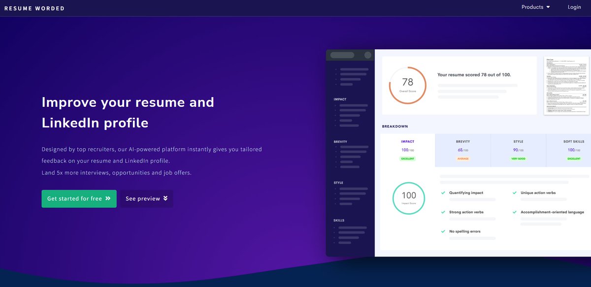 Instantly scores your resume and LinkedIn profile and gives you detailed feedback on how to get more opportunities.