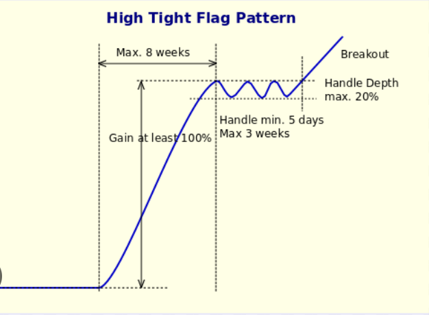 High tight flags are very rare & usually have high probability of success. They are the best answer to the popular saying "Instead of buying low & selling high, one should buy high & sell higher."