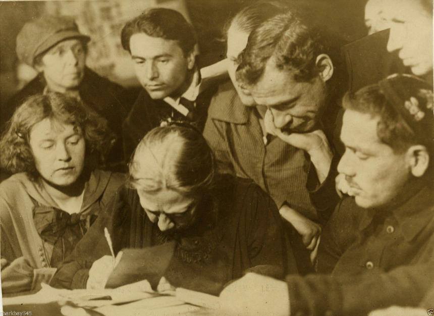 Krupskaya também coordenou os esforços para a eliminação do analfabetismo, liderando uma Comissão Extraordinária que mobilizou centenas de milhares de estudantes, professores e intelectuais. 15/24