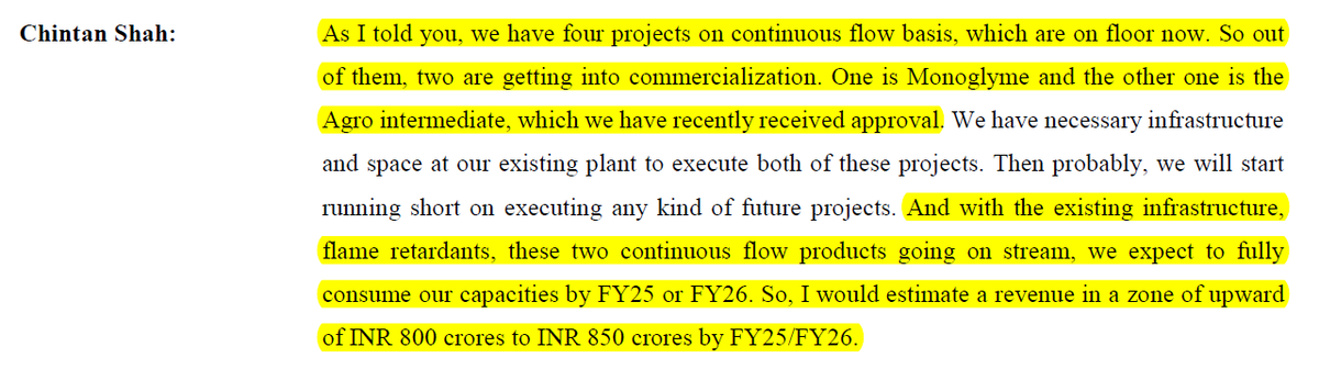 7. The company has developed another product which is an agrochemical intermediate for which the company expects to receive plant scale trial orders by July/August 2023 with commercialization happening in FY24.