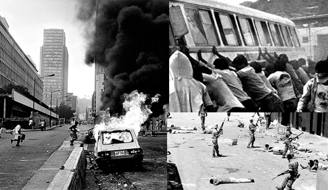A insatisfação popular atingiu o ápice em 27 de fevereiro de 1989, quando uma rebelião espontânea explodiu em Guarenas, no estado de Miranda. Rapidamente os protestos se espalharam por todo o país. 10/17