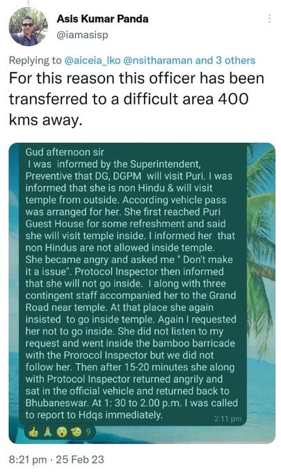 Thread-The entry of non-Hindus into the Shri Jagannath Temple of Puri is prohibited. #PaReshmaLakhani DG of @FinMinIndia misused her power to enter the Temple forcefully.The arrogance & Victim card being played by Reshma against another Servicing officer is unacceptable.