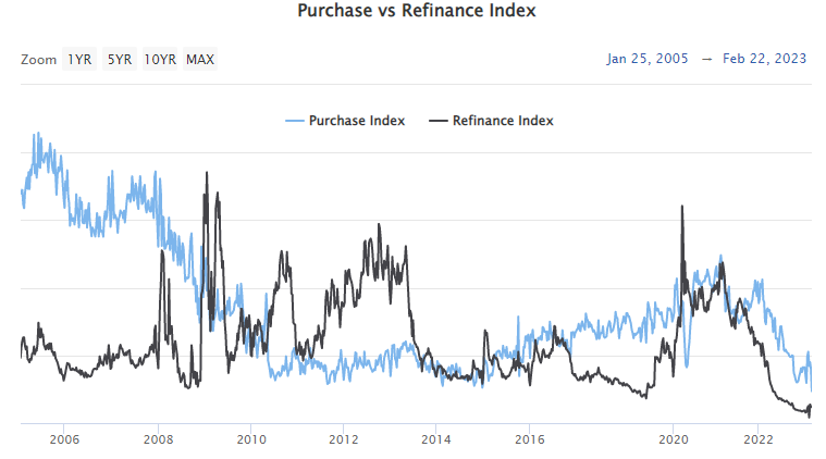 Mortgage purchase applications in the US are at their lowest level since 1995...