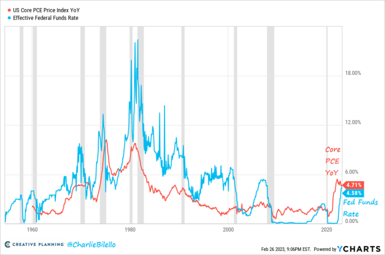 At 4.71%, Core PCE (the Fed’s preferred measure of inflation) remains above the Effective Fed Funds Rate (4.58%) and was above expectations in its latest reading.