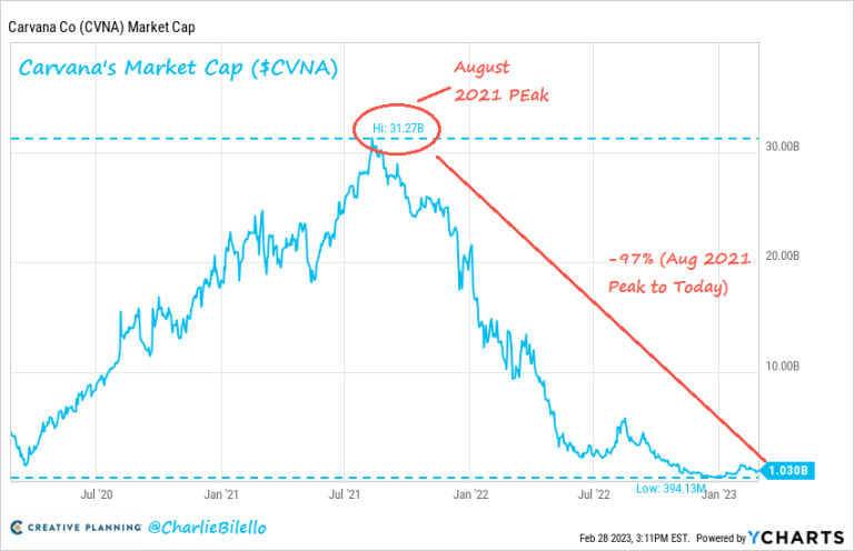 Back in August 2021, Carvana was valued at over $31 billion with investors caring only about top-line revenue growth. Fast forward to today & the bottom-line matters again, resulting in a 97% decline in its market cap to $1 billion.