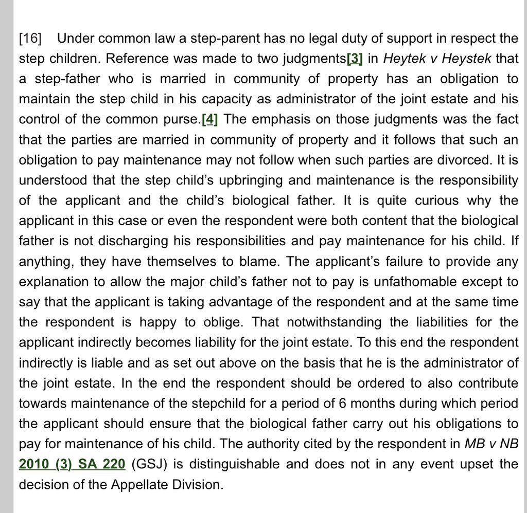 Further, that there was a legal obligation on Mrs to maintain the child and as Mrs is married in community of property to Mr, Mr is indirectly contributing to the maintenance for the said major child.
