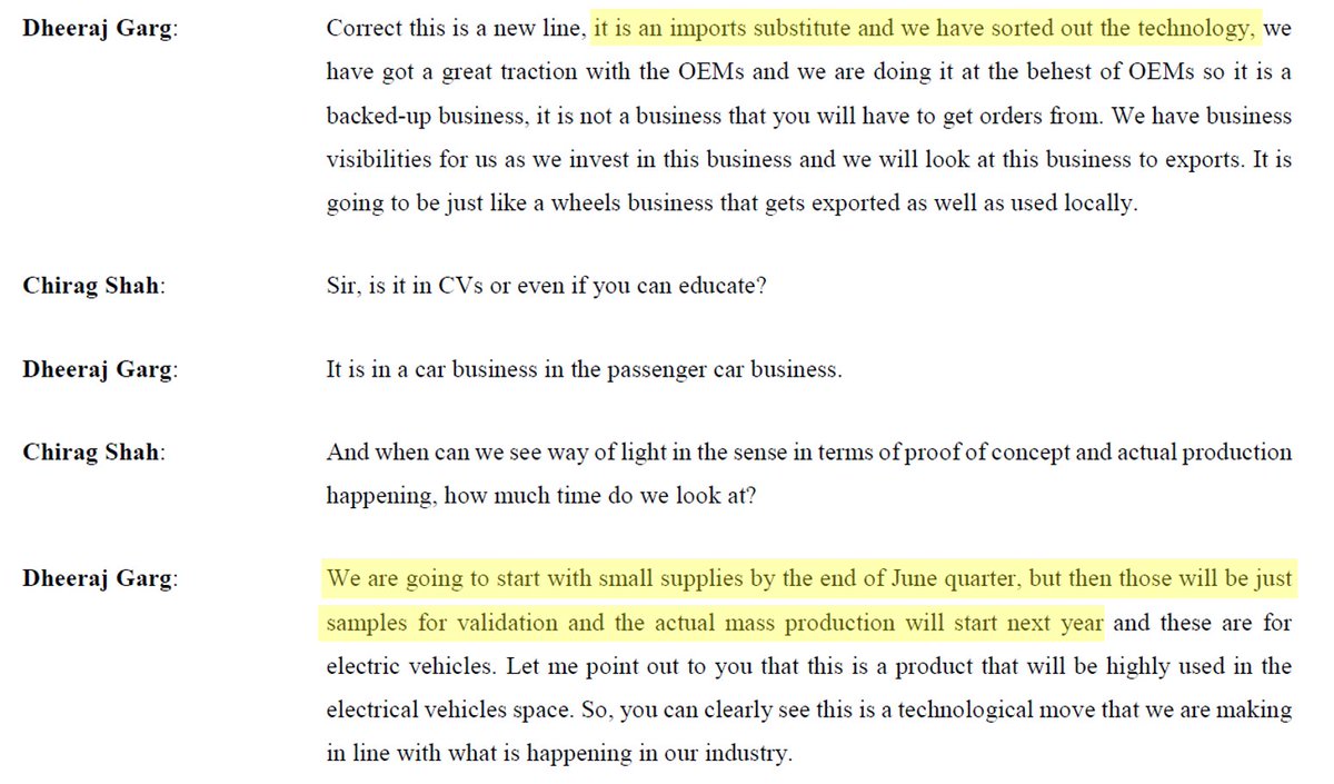 3. The aluminium castings business is a new business for the company where they have sorted the technology and have got good traction from OEMs and the castings made here will go into the passenger vehicle segment.