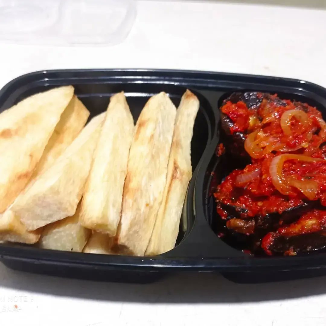 Peppered snail (3 pieces) + sauce + fried yams (10 chopped) =N3,500
