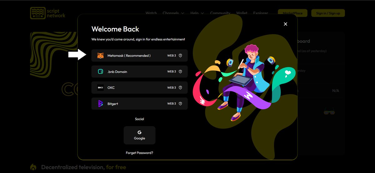 To register for the @script_network Tesnet go to: token.script.tv and at the top tap on "Sign up" choose MM and fill in the required details, you can use my referral code "ydvp6eOkK2" it isn't compulsory.