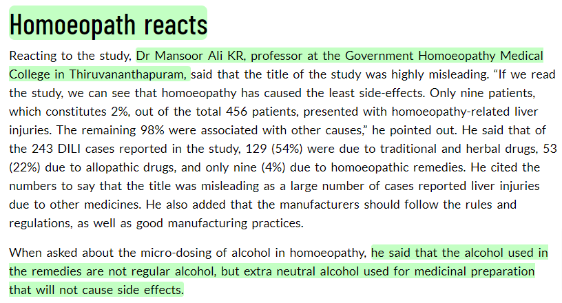 1/5 In this searing report based on our published work on Homeopathic remedies and liver injury, @AzeefaFathima & @TeresaMRaju dissects Homeopathy into what it really is - a magnificent mistake that survives on the scientific illiteracy among lay persons.
