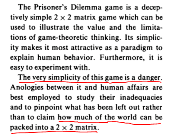 Shortly after Jervis published his work, another Bob, Bob Axelrod, published a piece in @ScienceMagazine about how cooperation may not be as hard as the prisoner's dilemma suggests.