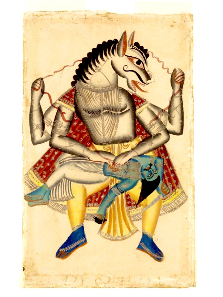 Painting 2: kalighat style Narasimha & Harinyakasipu, ca. 1835, kolkata, currently in London
