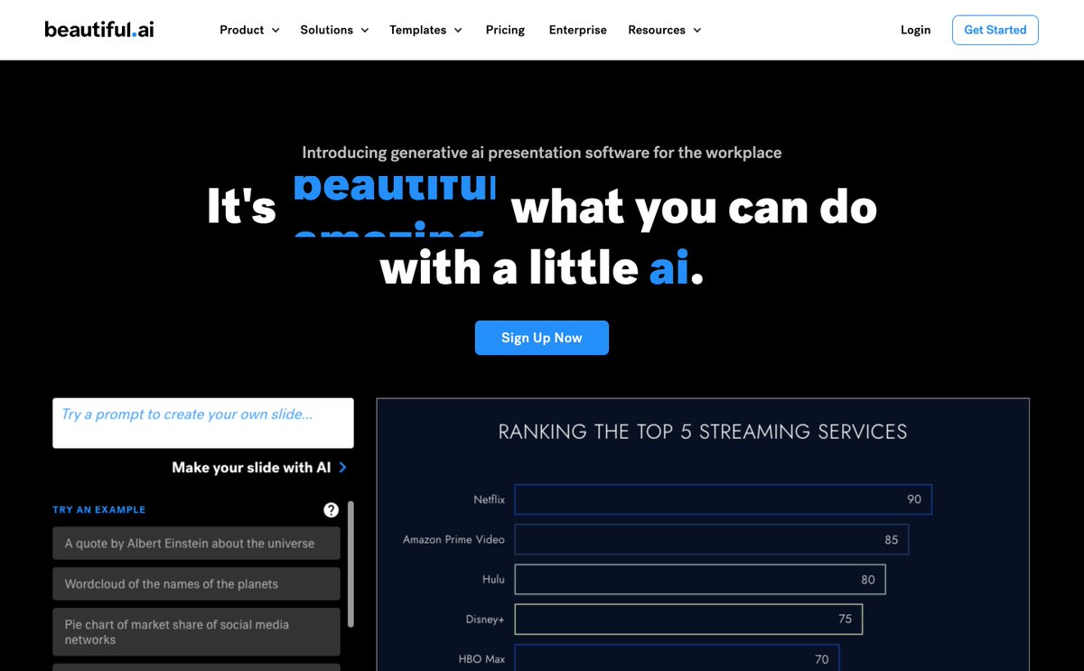 Beautiful AI is the first AI presentation maker that can create presentation in seconds.