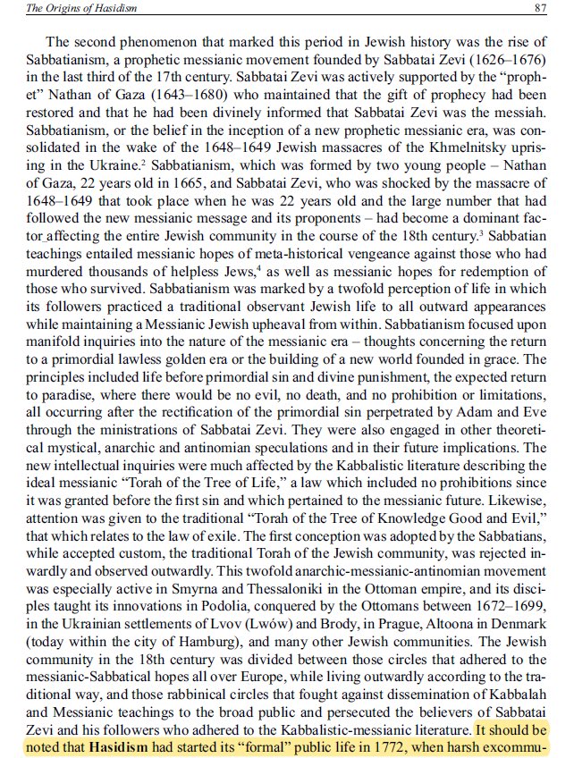 โIt should be noted that Hasidism had started its โformalโ public life in 1772, when harsh excommunications against its followers, who were perceived as Sabbatian heretics, were enacted in Poland, Lithuania, Galicia and the Ukraine.โ