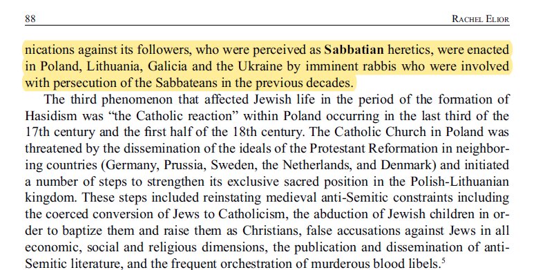 โThose persecuted were the Sabbatian believers, who chose to follow the new Messianic beliefs expressed in Kabbalah and which were reflected in charismatic leadership that offered a new messianic world, as well as the followers of Israel Baโal Shem Tov.โ