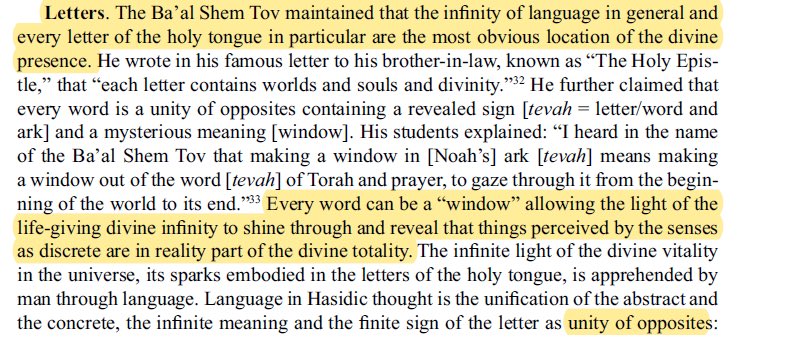 โThe Baโal Shem Tov maintained that the infinity of language in general and every letter of the holy tongue in particular are the most obvious location of the divine presence.โ