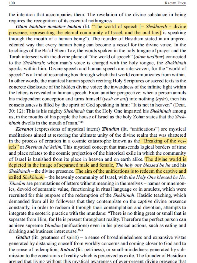 โBelievers live according to the twofold human response described as Devekut (total devotion to God and the Shekhinah to the extent of renouncing the realities of the material world) with the divine presence on one side.โ
