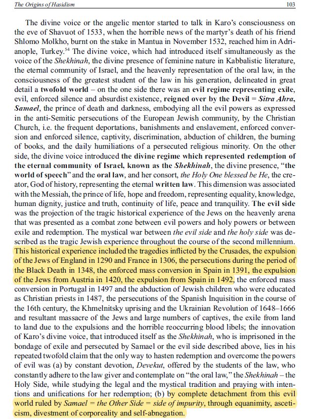 โThe only way to hasten redemption and overcome the powers of evil is by complete detachment from this evil world ruled by Samael = the Other Side = side of impurity, through equanimity, asceticism, divestment of corporeality and self-abnegation.โ