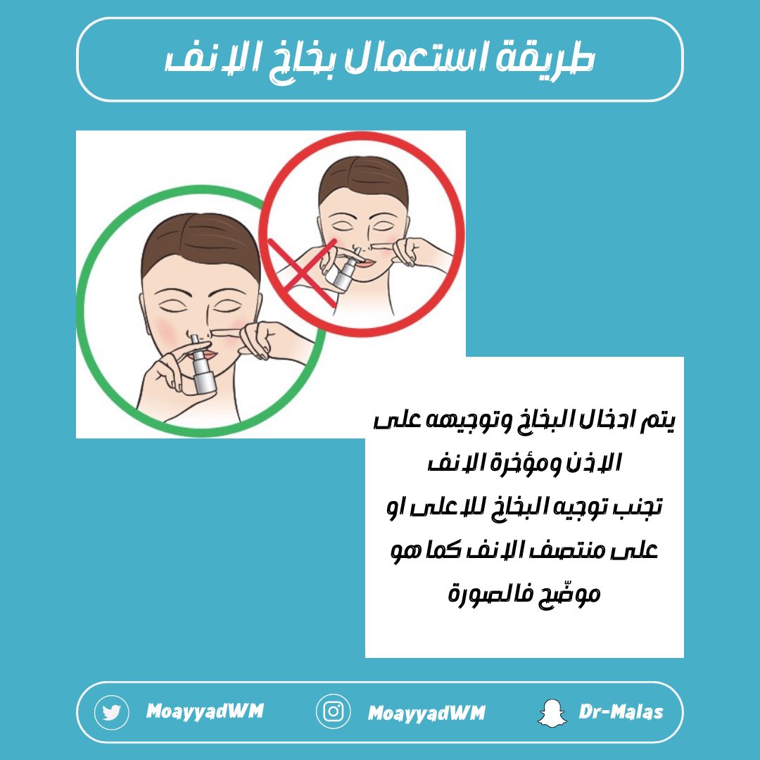 - تجنب توجيه البخاخ للاعلى او جهة متوسط الانف