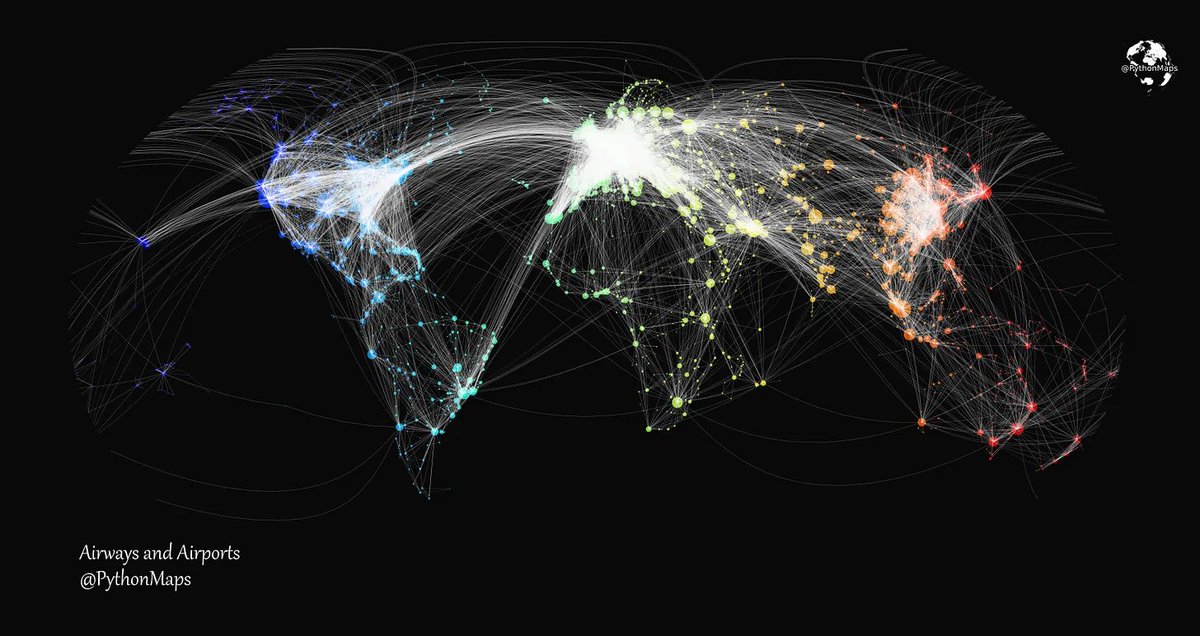 These network effects mean it makes sense to make these lines cross as close to each other as possible, so big cities don't usually appear close to others: they would steal transportation lines from each other