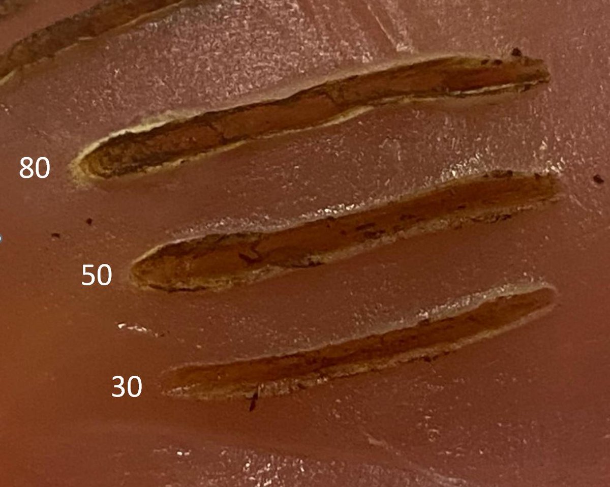Here you can see similar incisions made with 'cut' at 50 versus 'cut' at 30.