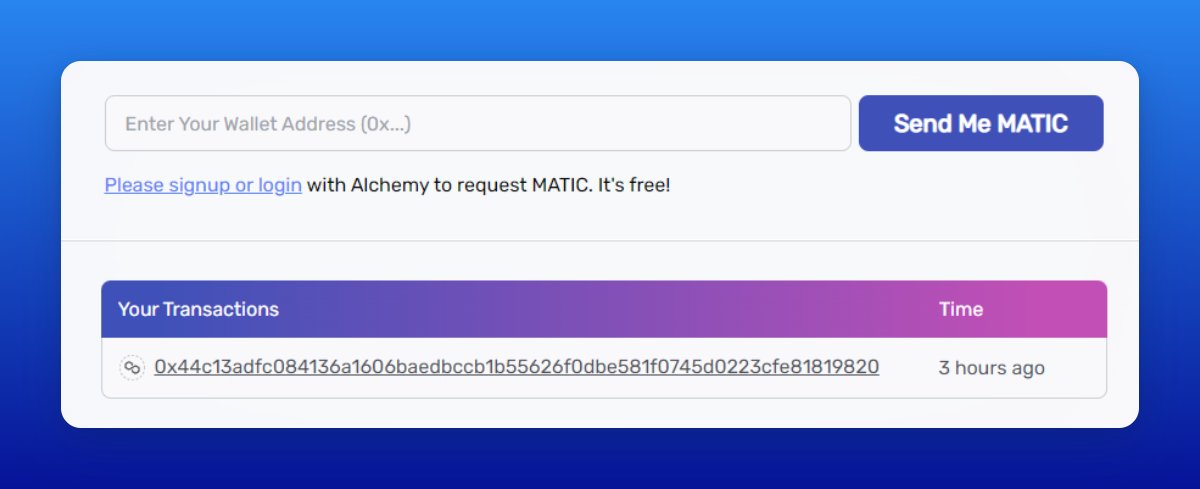 • Request testnet MATIC on goerlifaucet.com
