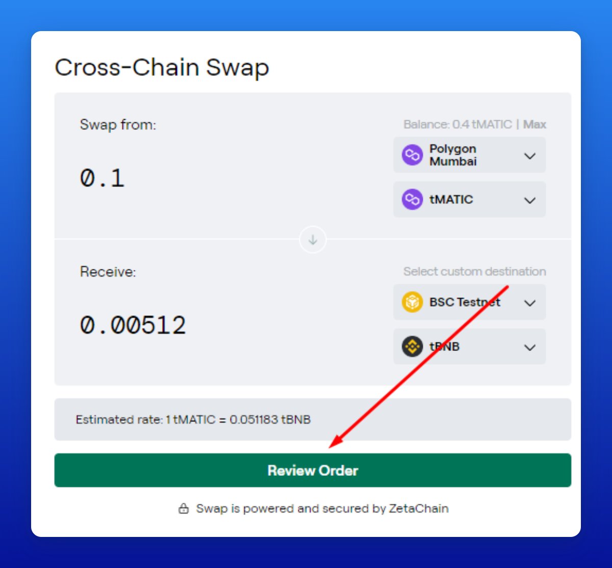 • Swap from Polygon Mumbai testnet to BSC testnet