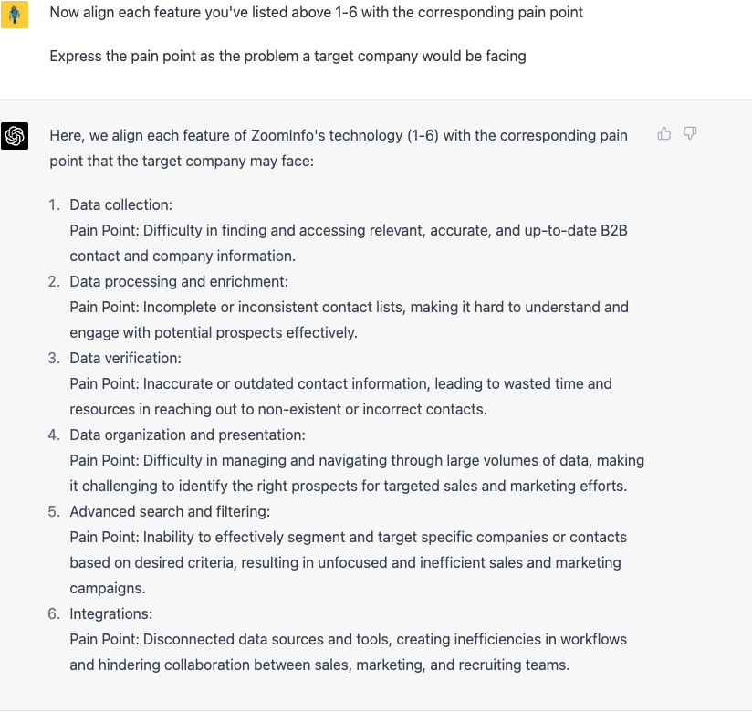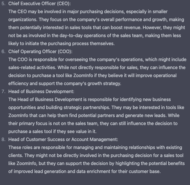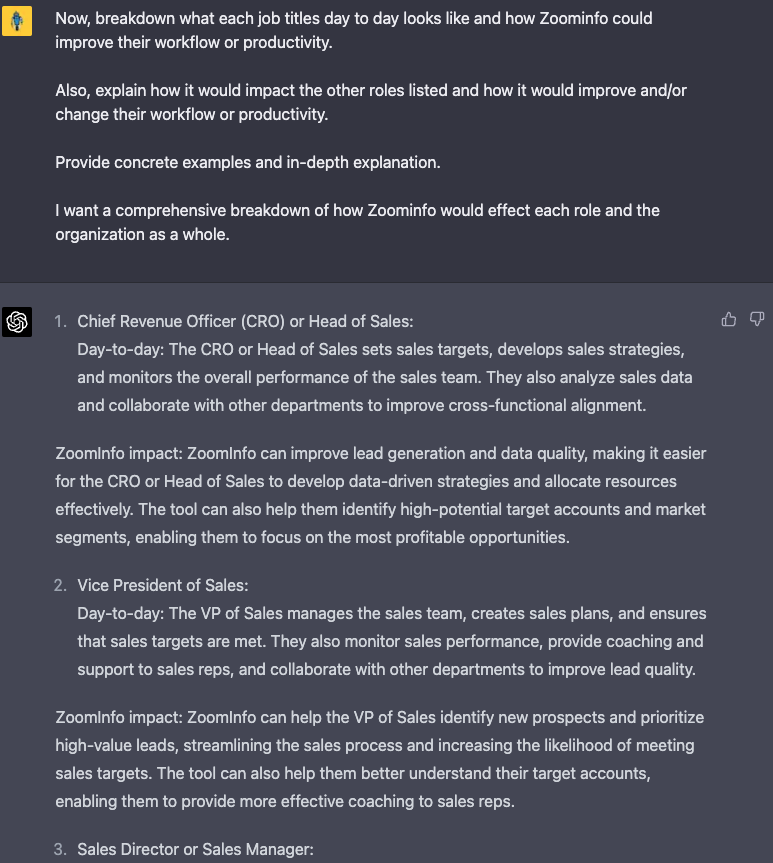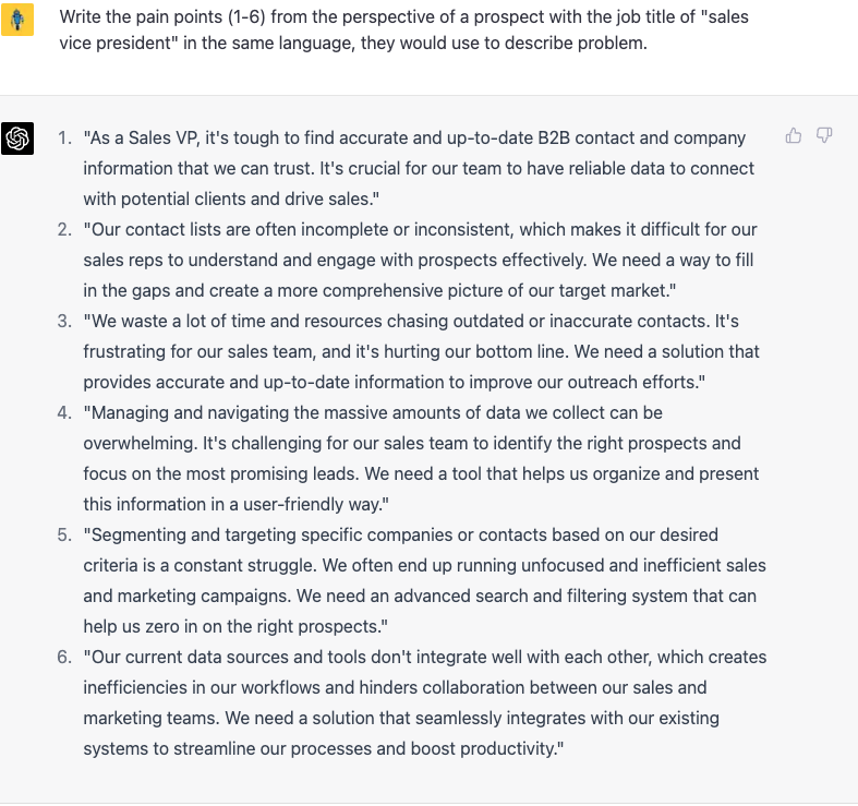 However, ChatGPT does a fantastic job of explaining how X role is impacted by each pain point from their POV