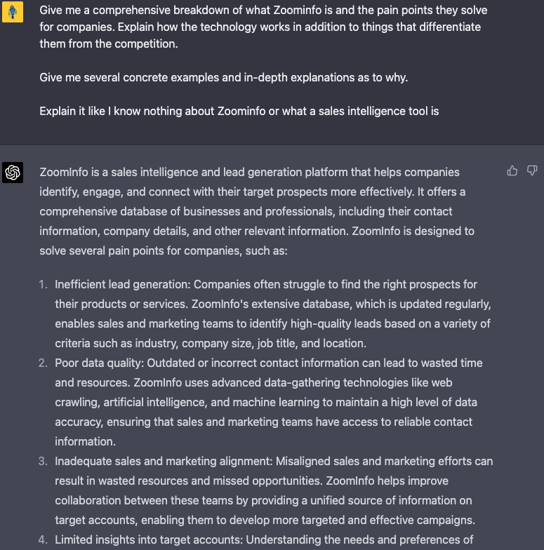 ChatGPT is better at explaining the technology than your manager, sales director, or sales vice president!