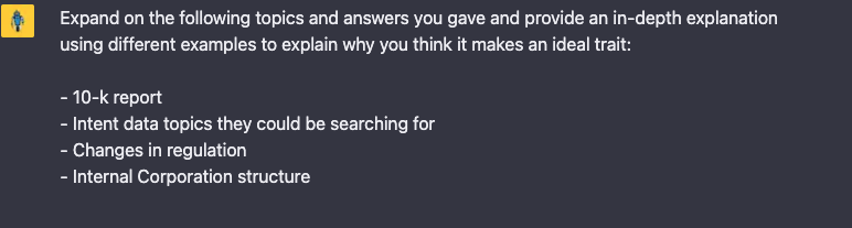 @BowTiedBull After reading this I was blown away by the results. This is a depth of targeting I didn't think ChatGPT was capable of...